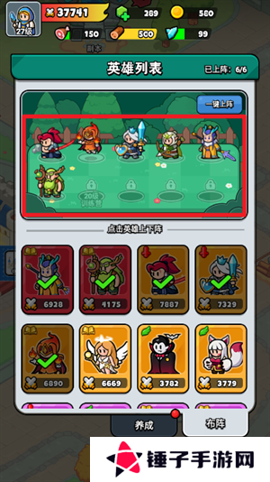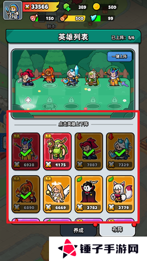 4、玩家们在布阵界面的上方选择需要更换的英雄,点击即可换下。