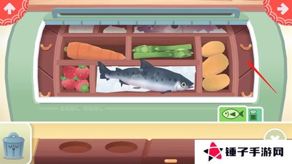 2、开始经营之后,对冰箱右侧进行上下划动,就能够看到不一样的食材。