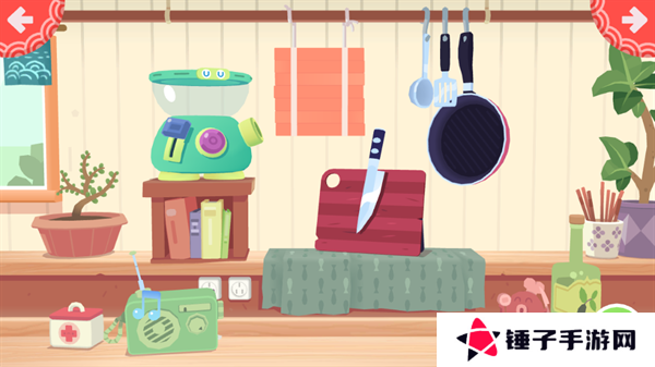 4、点击厨房界面的砧板以及菜单,就能够才是对食材进行切割。