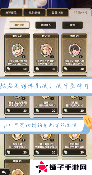 6、此外玩家们还将能够在商城的特殊兑换里面获取到自己已拥有角色的碎片。