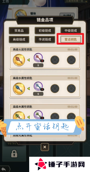 3、蜜话的钥匙可以在工坊之中进行合成,点击主页面的【工坊】按钮就能够花费材料合成钥匙。