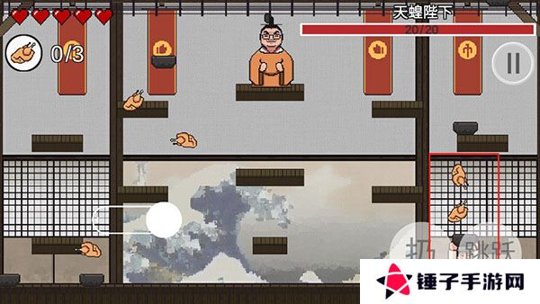 2、闯关的过程中玩家们需要灵活迅速的控制角色移动操作,以此来准确的接住掉落的鸡腿。