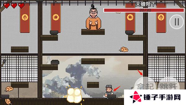 3、同时还需要躲避掉落的危险炸弹,当我们被击中后就会损失生命值,生命值清空后即为游戏失败。