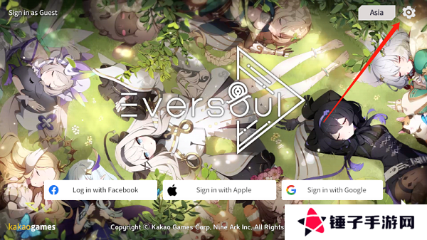 1、玩家们从本站下载安装完成之后启动游戏,在登录界面点击右上角的齿轮设置菜单按钮。