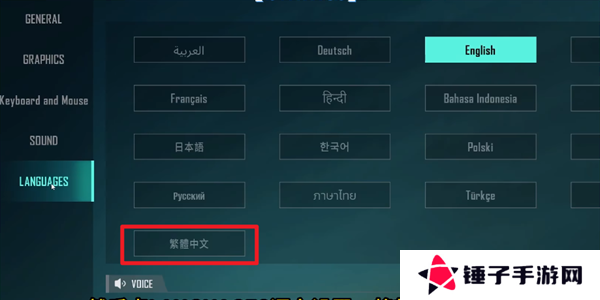 3、进入语言界面之后将会存在着各种不同类型的语言,此时点击左下角的繁体中文。