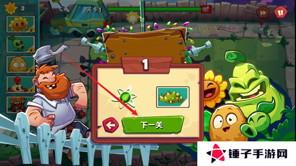 8、将所有的僵尸都击败之后,你就能够获取到关卡的胜利,得到相应的奖励,还可以点击下一关来继续进行游玩。