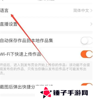 5、选择“语言”