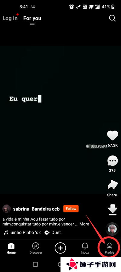 1、下载安装好kwai快手国际版后,点击右下角的“profile”后。