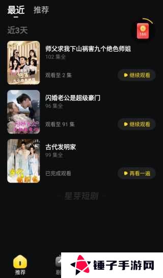 星芽短剧观剧之后的历史记录会显示在两个地方,一个是“最近”,一个是“历史”,星芽短剧无需登录就支持全集短剧免费观看,同样也会留下历史记录,但是此时的历史记录只会记录在“最近”中,并且不支持删除。