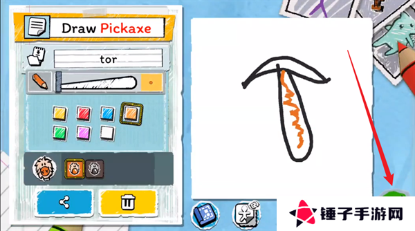 2、然后你需要在画板上面画出镐子的形状,并点击右下角的对勾。