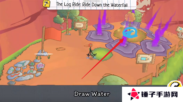 4、比如遇到了枯萎的树木,则需要使用蓝色的画笔来进行绘制,创造水源。