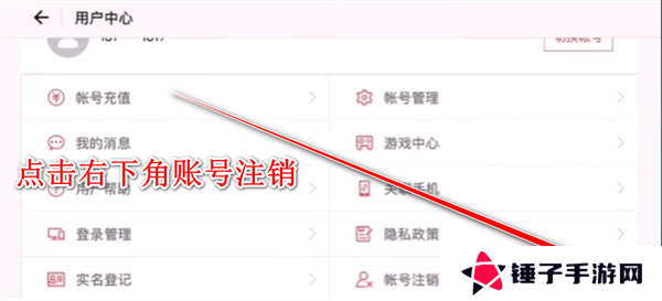 3、进入到账号界面后,玩家们在列表中地那几右下角的账号注销选项。