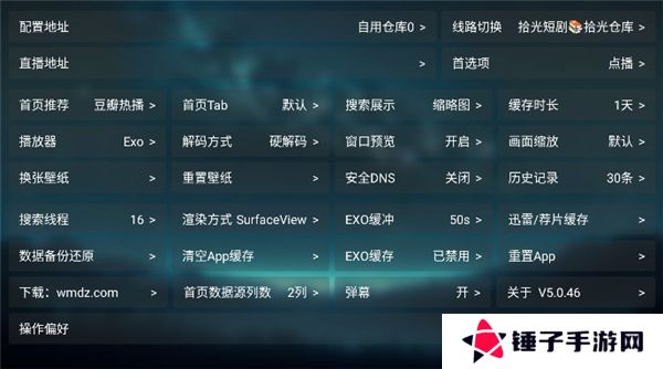 5、最后在设置界面中,我们可以切换壁纸、调整渲染方式、修改解码方式等,设定适合自己的看剧模式