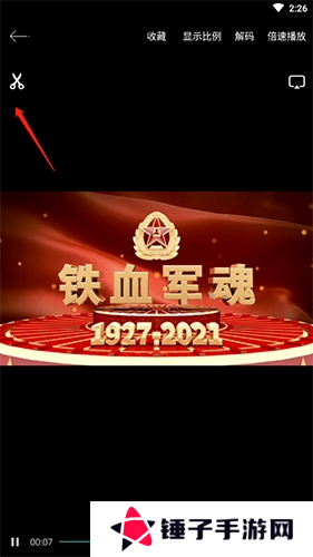 1、在视频播放界面中点击屏幕会显示进度条,然后我们点击进度条最右边的方框。