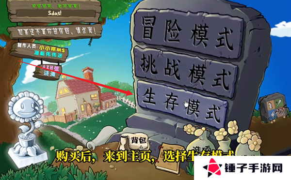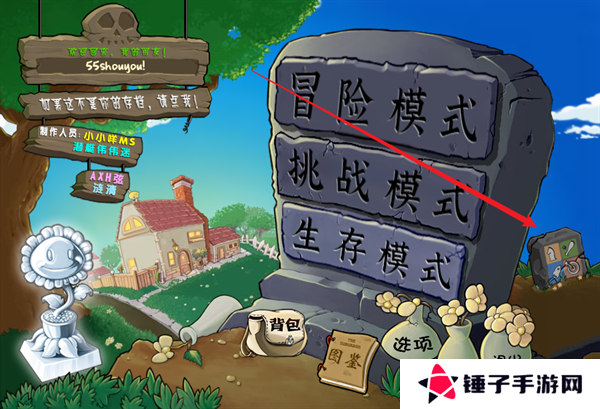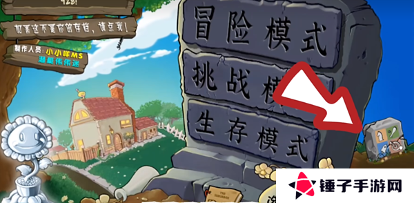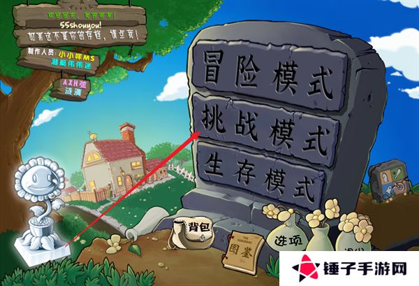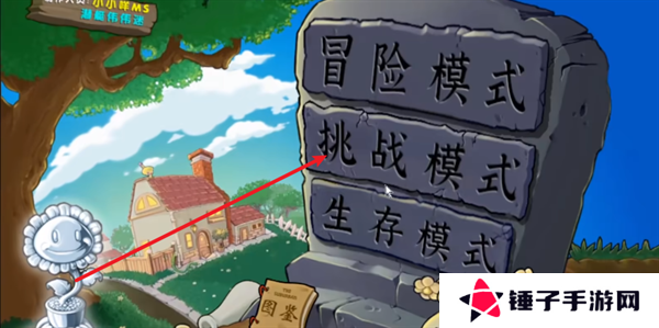 1、玩家首先在本站里面下载安装完成植物大战僵尸2.2版本,登录到游戏的主页面之后,选择挑战模式。