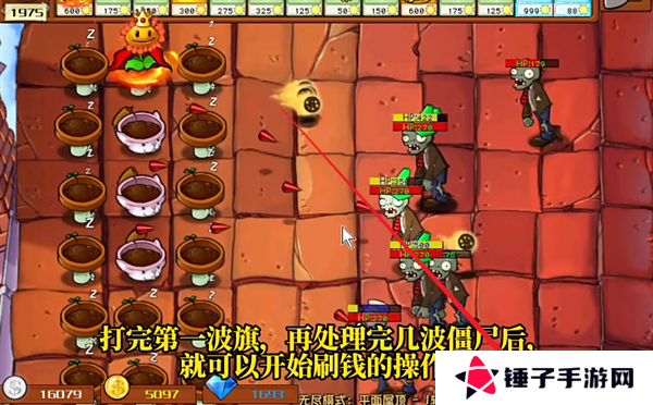 10、打完第一波旗,并处理完成当前场上的僵尸之后,就能够开始进行刷钻石的操作。