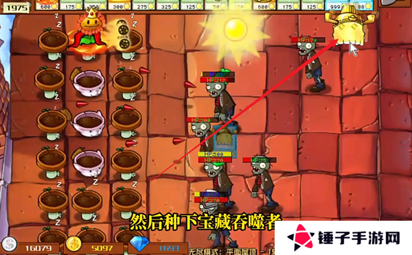 9、开始进行作战之后种植一株向日葵女王就可以了,如果觉得不保险的话,可以种植两株。