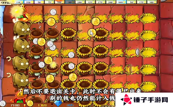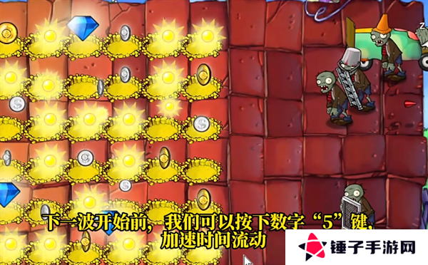5、在完成这一关内部的三波僵尸进攻之后,暂时不要退出游戏,接下来不会由任何的僵尸出来,就能够开始进行刷金币的操作。