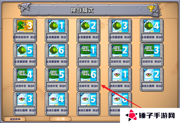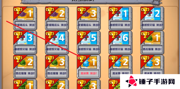 2、这里面会存在着多种不同类型的植物挑战,将同种植物的挑战关卡全部通关之后,你将能够获取到对应的金卡。