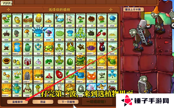 16、来到选择植物的界面,点击左下角的查看草坪。