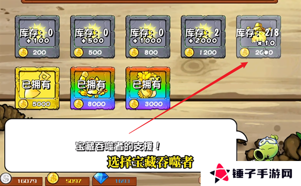 8、如果觉得刷金币的速度不够快,还可以同时使用宝藏吞噬者来进行刷金币的操作,宝藏吞噬者会周期性的产出各种材料,比如阳光、金币以及钻石等等。
