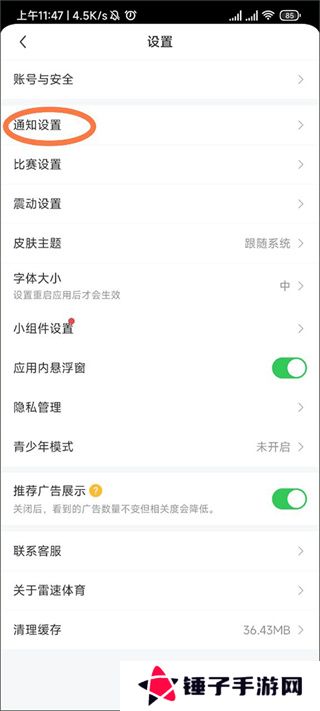 3、在列表中找到通知设置然后点击它;