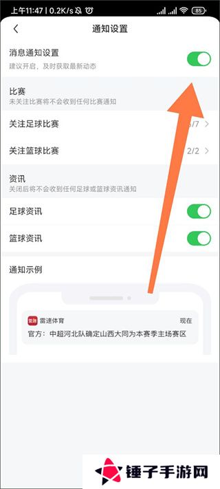 4、然后将消息通知设置后面的滑块点亮就大功告成了。