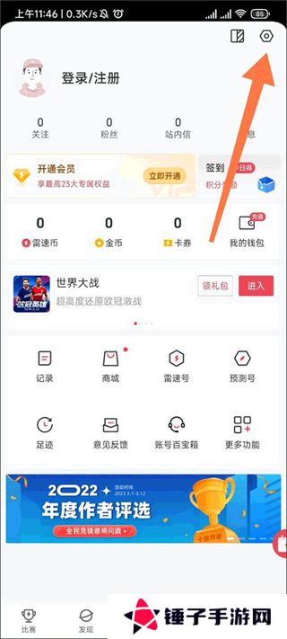 2、进入个人界面后点击右上角的小齿轮进入设置界面;
