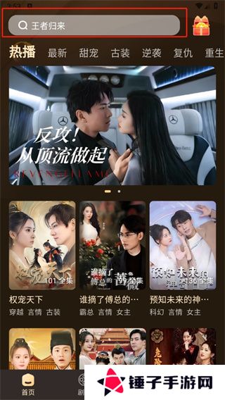 爆米花视频app怎么搜索1、首先打开爆米花视频app,进入到首页中后我们可以查看到推荐的内容,在这里点击页面上方的【搜索框】;