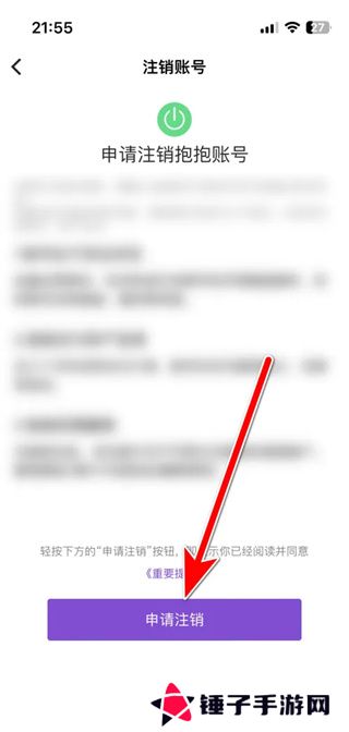 5、点击【申请注销】选项,即可申请注销账号。