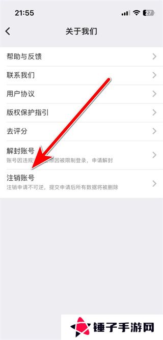 4、找到“注销账号”或“申请注销”选项,选择“注销账号”;