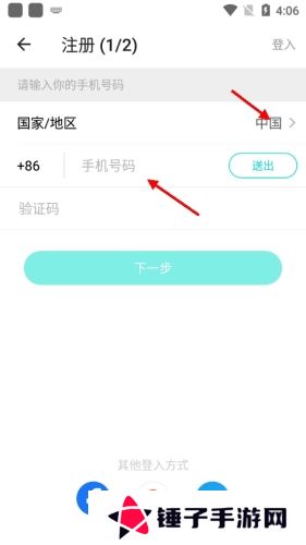 2、在注册页面内再次输入手机号、验证码。