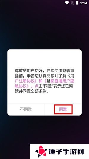 魅影直播怎么登录账号啊1、在七匣子手游网下载打开app,阅读弹出的内容,点击【同意】;