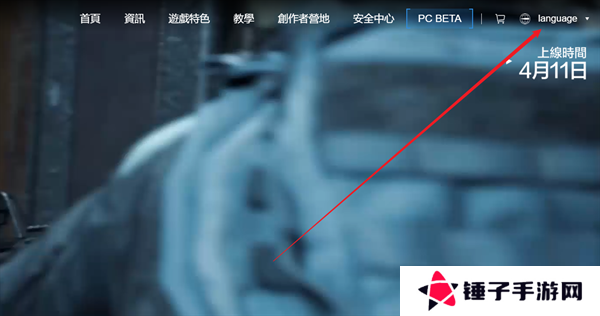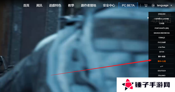 1、玩家们首先需要输入(arenabreakout.com)进入到游戏的网站当中,点击右上角的语言。