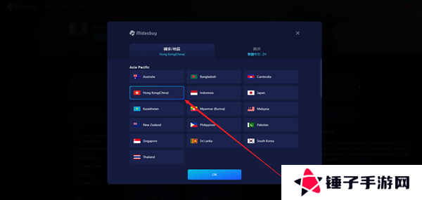 5、在弹出的界面当中将自己的地区更换为香港。