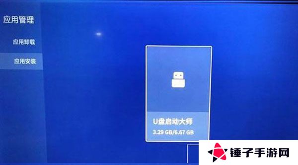 3、点击【应用安装】,选中插入的u盘,点击打开;