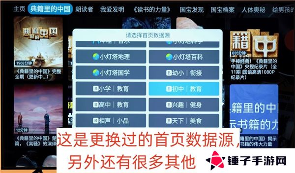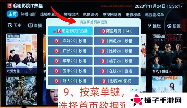 这个时候要按电视遥控器上的菜单键(就是三条横杠的那个按键),然后会弹出“请选择首页数据源”的窗口。更换数据源之后,可以看到主页界面已经变了,不同线路的数据源都不同,根据需要自己选择。