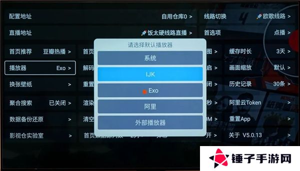 另外,在播放器设置这里,默认是Exo播放器,如果经常看直播的话,可以更换IJK播放器,因为Exo在直播方面稍微差一点,不过日常观影的话,可以选择Exo播放器。