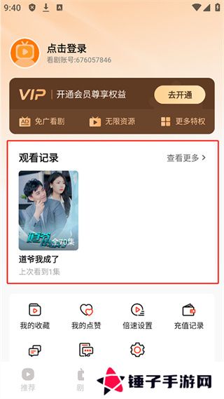 来看短剧app追剧记录怎么删除1、点击进入【我的】页面,点击“观看记录”;
