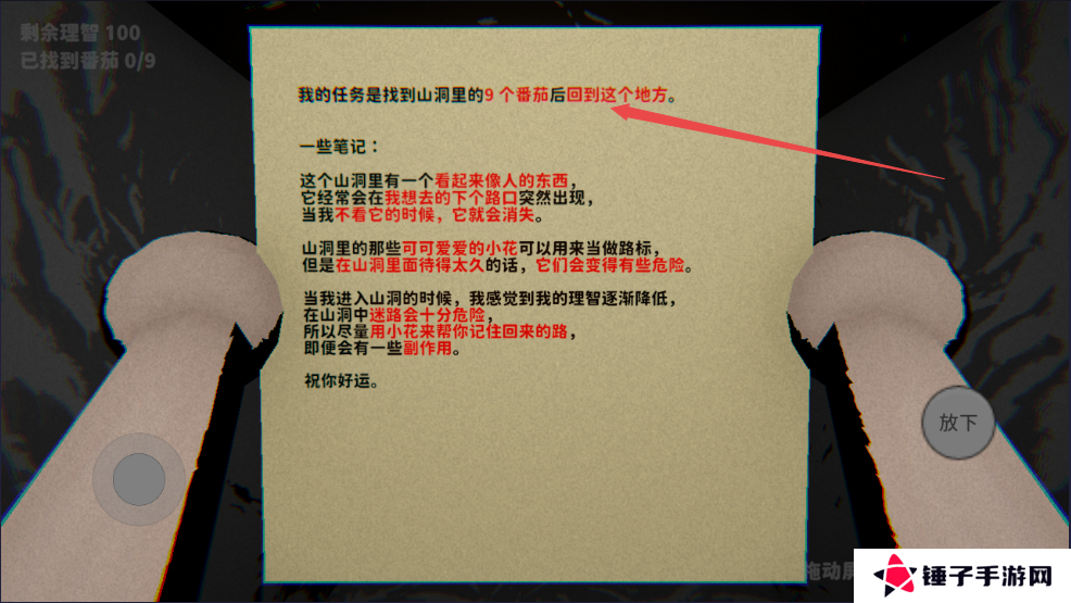 可可怕怕山洞探险内容:1、在进行游戏后,玩家可以看到画面的左上角将会显示你的目标,还有角色的状态;