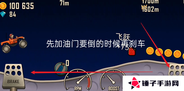 3、开始游戏之后,你先加油门,然后等待赛车快倒的时候,再进行刹车,重复进行这个步骤,就能够获取到大量的金币。