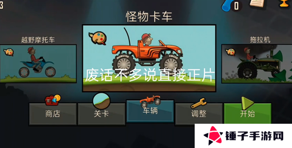 1、想要在登山赛车里面刷金币,首先需要拥有一辆怪物卡车。