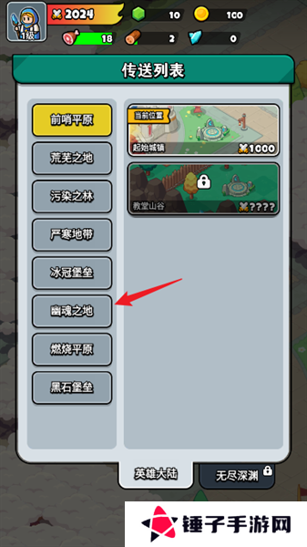 3、最后在幽魂之地的列表中选择想要传送的地点点击即可前往。
