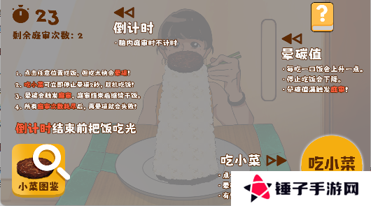 需要玩家注意的是每一关都充满了未知的挑战和趣味性,独特的游戏机制等着玩家前去进行解锁的,玩家需要在倒计时结束前完成所有米饭的挑战,当玩家完成挑战之后就可以获得到一定的资源了。