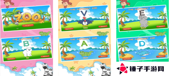 这是款将单词知识和动物主题结合的神奇作品,玩家将进入动物园中跟随小动物学习单词,各种英文单词均具备不同的动物名称含义,你需要对号入座选择正确的单词完成关卡,游戏画风出彩具备儿童很喜欢的卡通元素,注重交互的单词学习理念更是本作亮点,各位想启蒙英文知识的小朋友进入动物园玩耍吧。