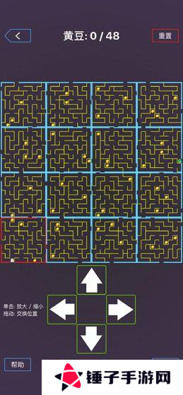 游戏盘面由16个独立的小迷宫组成,每个迷宫内都隐藏着黄豆,玩家需要合理规划路径,将这些分散的区域通过调整位置连接成一条可行的通路。四通八达的出口设计让每一步决策都充满挑战,如何在最短时间内找到最优路线,成为成功的关键。迷宫的布局并非固定,拖动、交换位置的互动机制,让游戏不仅仅是路径选择的考验,更是空间思维的较量。