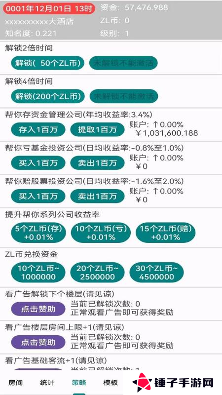 从一家默默无闻的小酒店起步,通过精心的经营与策略,逐步在全球各大城市开设分店,最终打造出七星级酒店集团。你需要平衡收支,研究酒店行业的奥秘,从客房设计到餐饮服务,每一个细节都关乎酒店的成败。游戏画面精致细腻,酒店的装潢与客人的互动栩栩如生,背景音乐轻松愉悦,营造出宾至如归的氛围。