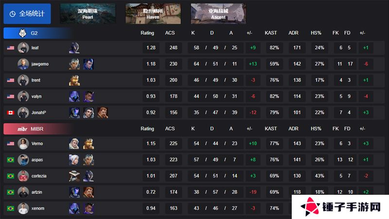图一MIBR选择深海明珠,凭借Verno与aspas的出色发挥,MIBR鏖战加时以14-12先下一城。但随后G2依靠valyn和jawgemo的精彩表现,在自选图隐世修所上以13-11扳回一局。