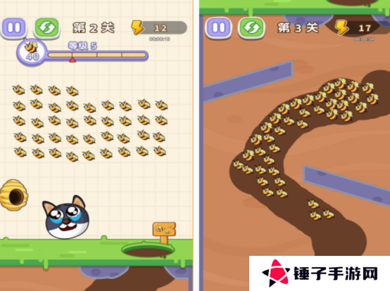 在这款通过划线展开闯关的游戏中,大家可看到成群结队的蜜蜂,如果你在划线的时候方法不正确,就容易使蜂蜜攻击里面的小狗,所以你需要做的就是,避免里面的狗狗受到蜜蜂的伤害。相对于普通的划线手游,这款在设计风格上非常的独特,每次关卡所具备的难度挑战都是不一样的,你需要在挑战关卡的时候发挥自己的脑洞。