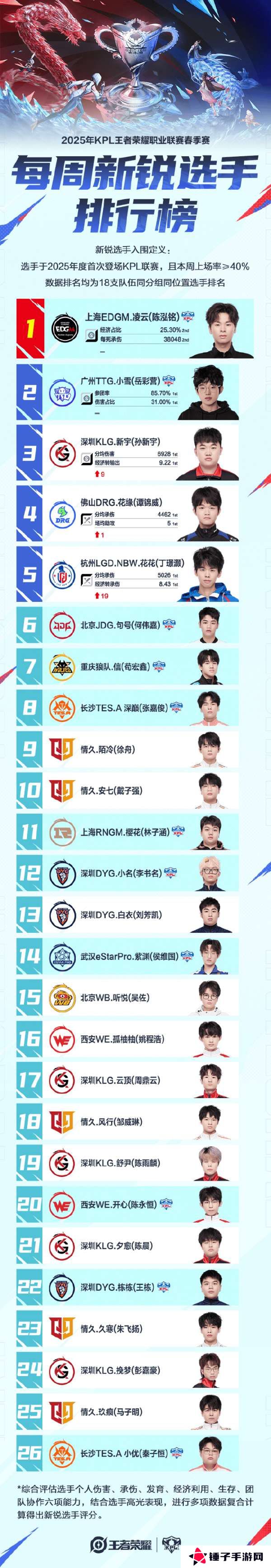 2025KPL春季赛 【每周新锐选手排行榜】第七周榜单公布~
